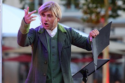 Schiller kommt! Nach Dresden! Christian Gottfried Körner und seine Familie boten dem angehenden Dichter und flüchtigen Militärarzt Friedrich Schiller sein Sommerhaus am Elbhang als Dichterrefugium an. Dieser bleibt. Fast drei Jahre. Er schreibt den „Don Carlos“ und die heutige Europa-Hymne „Ode an die Freude“. Er zeichnet die ersten Comics der Literaturgeschichte. Er rappt über „Waschweiber“ und dichtet, dichtet, dichtet und lebt! Ein Schauspieler, eine Sängerin, ein Kammerchor, Klavier und Streichquintett unter dem Motto "Die Kunst ist eine Tochter der Freiheit“ mit Texten, Liedern und Bildern rund um das Thema “Freiheit“ von Schiller, Gottfried Körner und anderen Künstlern dieser Zeit.