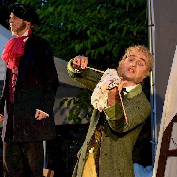 Malerei, Märchen, Musik und Medizin – Caspar David Friedrich und Carl Maria von Weber, Carl Gustav Carus und Ludwig Tieck u.v.a.m. – in der Sächsischen Romantik war die Welt ein Märchendorf. Begegnen Sie in unserem Romantischen Panoptikum noch vielen weiteren Künstern, Philosophen und Wissenschaftlern einer faszinierenden Epoche, wo jeder mit und über jeden redete. In zwöf humorvollen Dialogen mit dem Publikum erzählen diese Figuren, wie das Leben damals war und was wir für heute davon behalten könnten. Zu romantischen Klängen von Klavier und Cello können Sie in dieser Nacht in Fantansien, Legenden und Anekdoten schwelgen. Bald kann man die Wirklichkeit nicht mehr vom Märchen unterscheiden, bald kann man zwischen Lachen und Tränen gar nicht mehr so schnell wechseln und bleibt einfach: Berührt von Leben und Kunst!