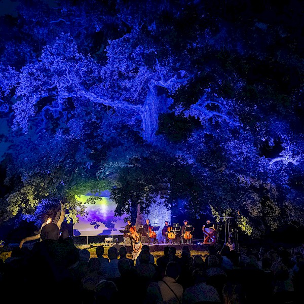 Als musikalisches Pendant erklingen Cello-Quartette und Gamben-Duos aus der Romantik und eigens dafür von Maximilan Nicolai arrangierte Lieder von Novalis. Ein besonderes Highlight ist die Glasharmonika, eines der seltensten Instrumente überhaupt, die auch von Novalis zweiter Frau genial gespielt wurde. Ihre himmlischen sphärischen Töne lassen eine bessere Welt greifbar werden.