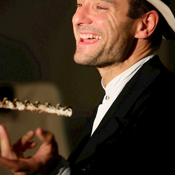 Der Musiker, Instrumentenbauer und Regisseur Sascha Reckert ist seit 1986 auf Musikinstrumente aus Glas und deren Repertoire spezialisiert.