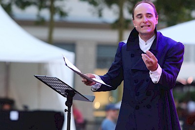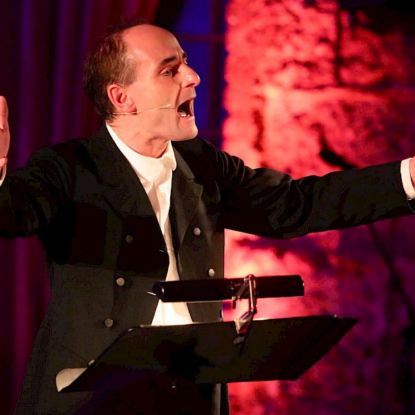 In der Rolle Carl Maria von Webers ist der Schauspieler Johannes Gärtner zu erleben. Mit Charme, Esprit und erzählerischer Tiefe führt er durch Leben und Werk des Komponisten und lässt die Epoche der deutschen Romantik lebendig werden.